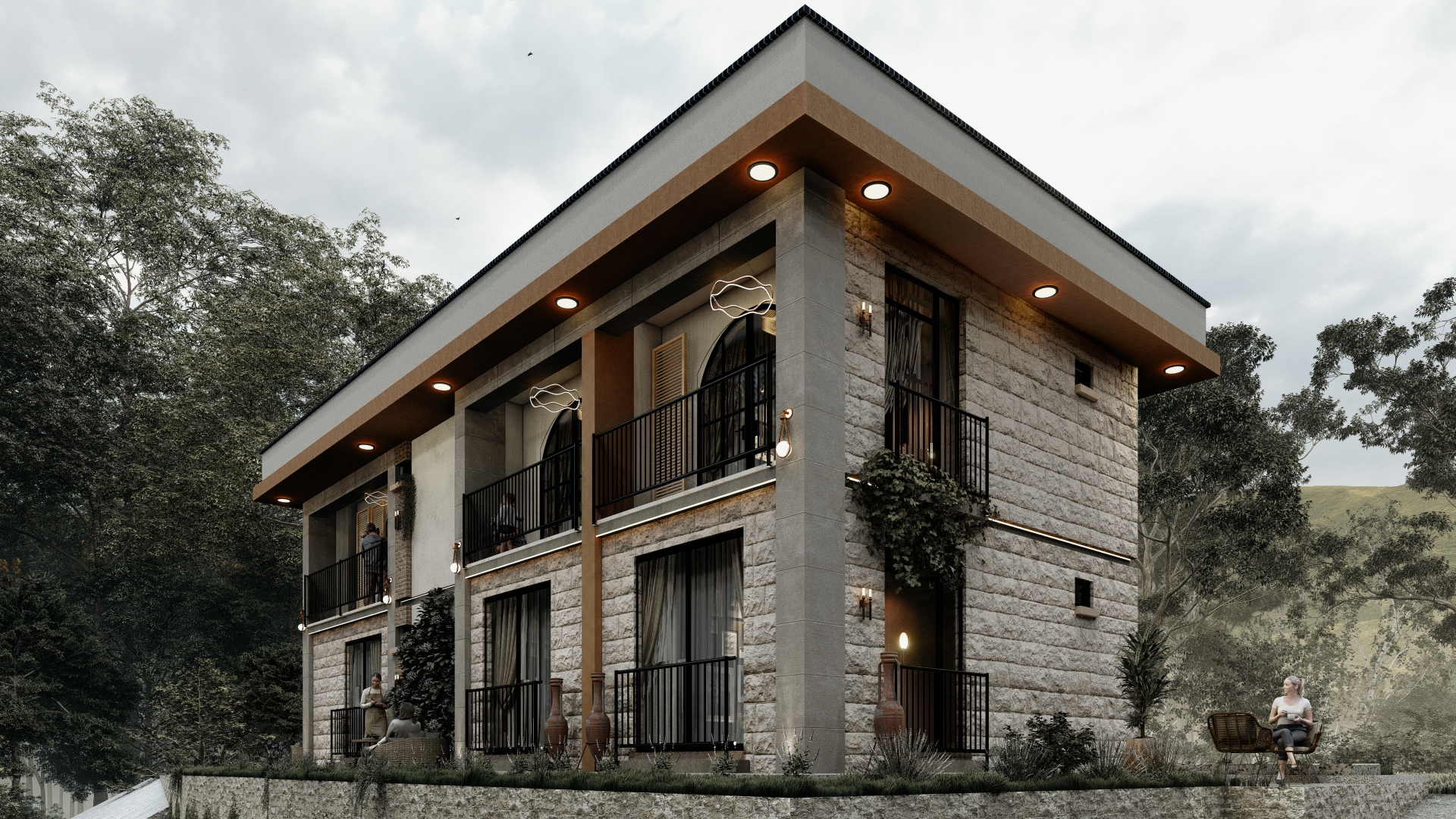 Saniye Elmes 8 odalı Taş Otel Pansiyon Projesi